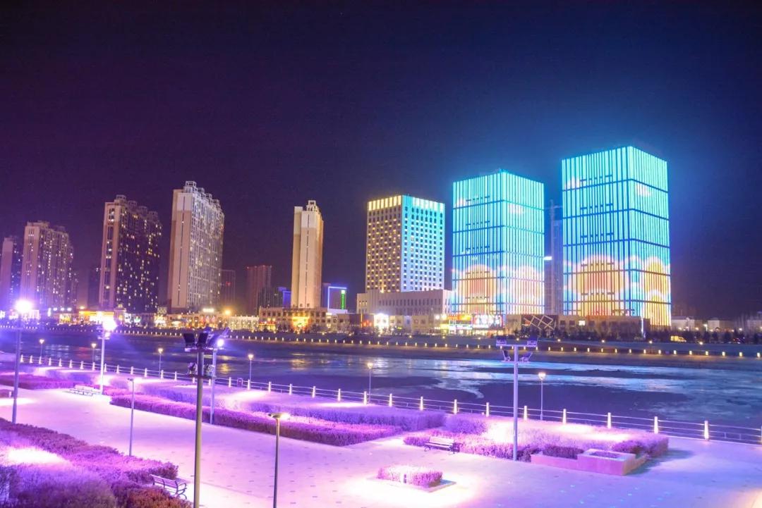 (他们两人停下脚步,深情地看着赤峰这座城市。)